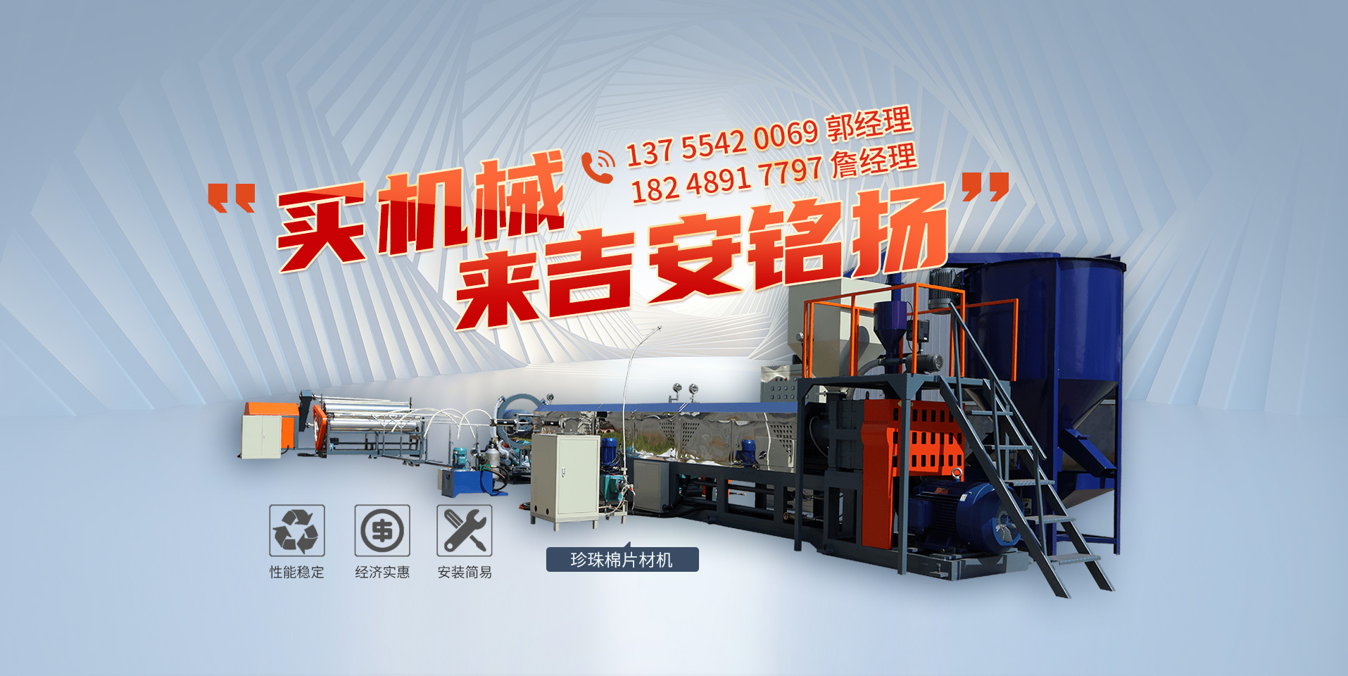 吉安銘揚(yáng)機(jī)械有限公司成立于2019年,總經(jīng)理有著二十多年從業(yè)經(jīng)驗(yàn),是一家專(zhuān)注于珍珠棉機(jī)械設(shè)備研發(fā)、開(kāi)發(fā)、生產(chǎn)及銷(xiāo)售的現(xiàn)代高科技企業(yè),主要產(chǎn)品有:珍珠棉發(fā)泡機(jī)、覆膜機(jī)、珍珠棉電復(fù)合機(jī)、珍珠棉造粒機(jī)等數(shù)十種產(chǎn)品,應(yīng)用于包裝、建筑、材料等行業(yè)??偛考把邪l(fā)基地設(shè)立于風(fēng)景秀麗的紅色革命根據(jù)地吉安。